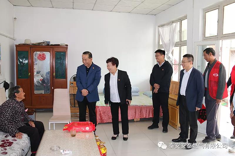 10月14日上午,泰山玻纤党委委员、副总经理兼安泰燃气党支部书记、董事长赵恒刚带领安泰燃气领导班子成员及支委代表来到满庄镇华家岭村进行走访慰问,为辖区老人们送去祝福。满庄镇人大主席陈振法,管区书记马金金,华家岭村党支部书记、村委会主任宋绍杰共同参加活动并对一行人表示欢迎。每到一户,赵恒刚都详细询问老人的生活状况,叮嘱他们保重身体。一件件精心准备的礼品、一句句关怀备至的暖心话,访出了重阳节浓浓的敬老情。