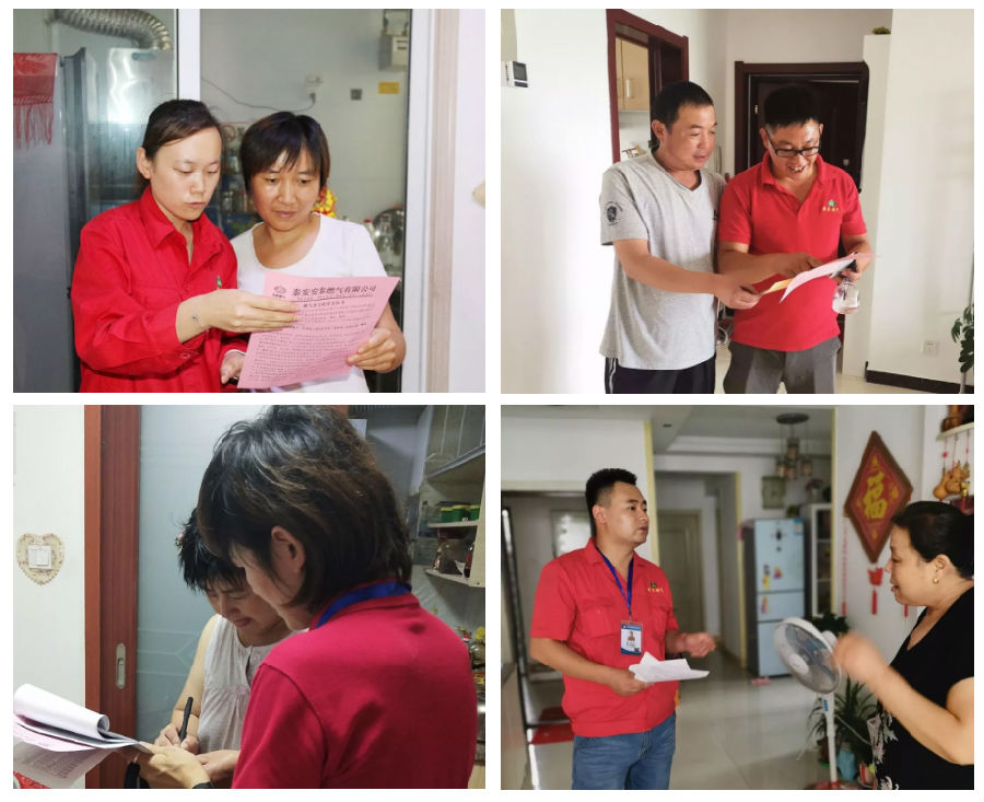 为确保所辖用户用气安全,安泰燃气结合夏季高温特性,在前期以双重预防体系为抓手开展安全隐患排查的基础上,按照《泰安市城区城镇燃气安全生产专项整治实施方案》,严格落实“七个一遍”、“七个一律”要求,精密部署、周密安排,集中力量、集中时间,组织全员开展居民用户、工福用户、燃气管网、输配站区的隐患大排查,结合用户安全用气知识的缺乏情况对燃气用户进行了安全知识和应急处置的宣传教育,使这次安检做到“全覆盖”、“零遗漏”。